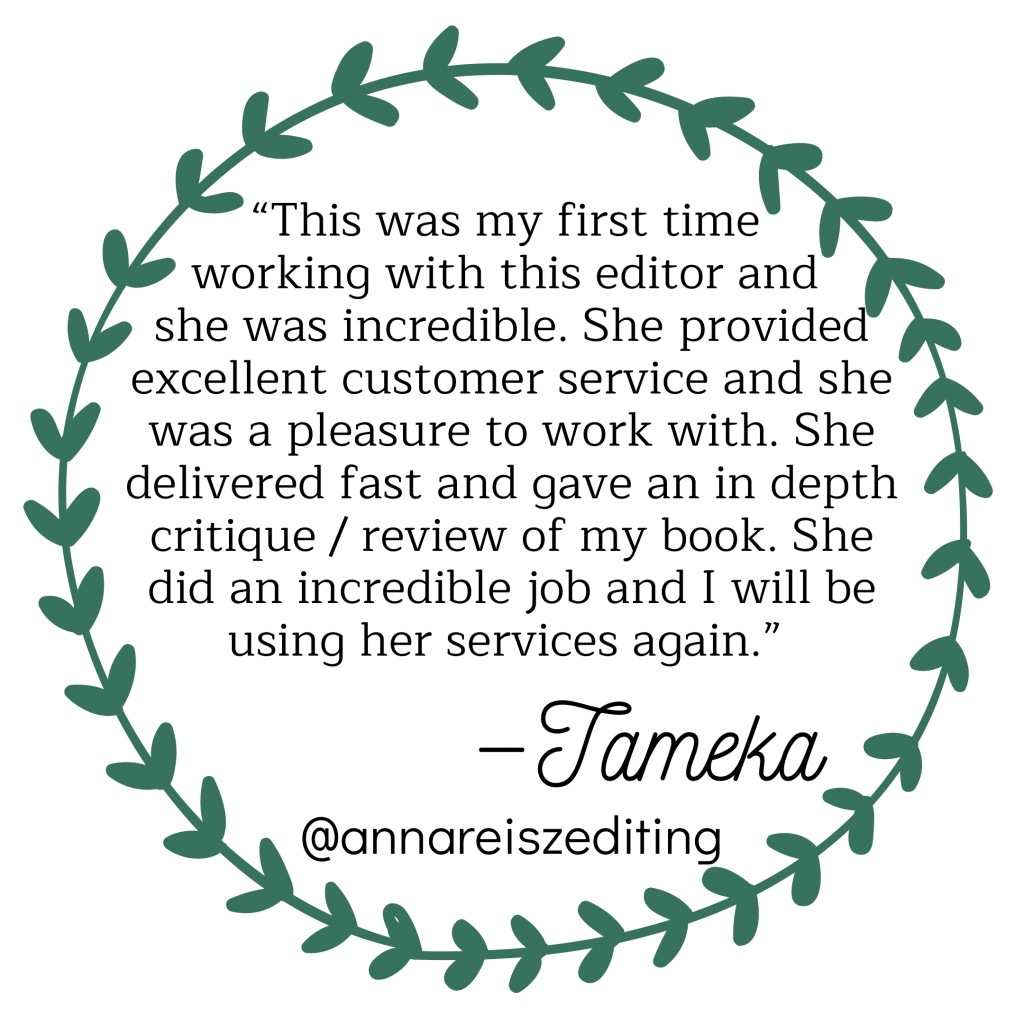 I’m Anna Reisz, a freelance editor and writer with a background as an educator and librarian. I edit anything from full length novels to educational materials, blog posts, magazines, book proposals, social media copy, and so much more. My editing approach combines attention to detail, a love of the written word, an analytical understanding of both fiction and nonfiction, and a desire to work collaboratively to bring out the best in your writing. Let me help your writing shine!
