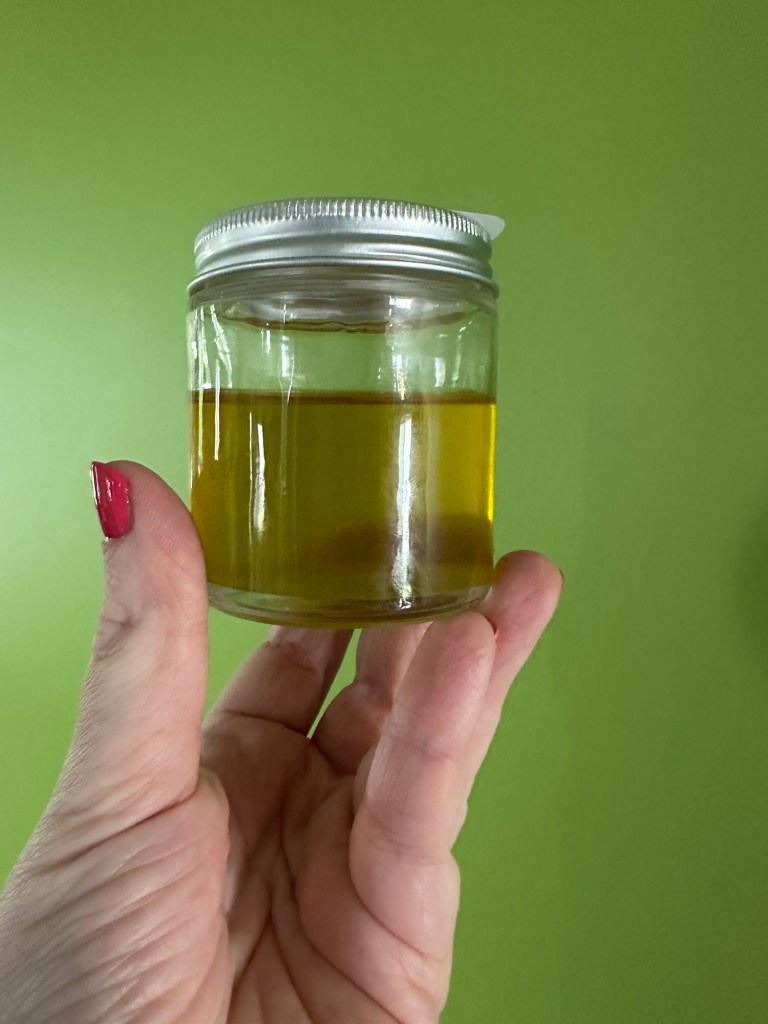 Begin by infusing your herbal oil. Do this by filling one jar about ½ full of dried linden, then filling with jojoba oil until the dried plant material is completely submerged, using a chopstick or wooden spoon handle to remove any air bubbles. Do the same with the dried lavender and sweet almond oil, filling the jar about ⅓ full with the lavender. Place both jars into a saucepan or bottom of a double boiler pan with about 1 ½ to 2 inches of water and place on the stove over low heat for 3-5 hours, watching closely to ensure that it doesn’t get too hot (you don’t want to cook your herbs!) and making sure the plant material stays submerged. Remove from heat and allow to cool once the oils have changed in color from the herbs and smell fragrant. After cooling, strain through a fine mesh strainer with cheesecloth into clean jars.