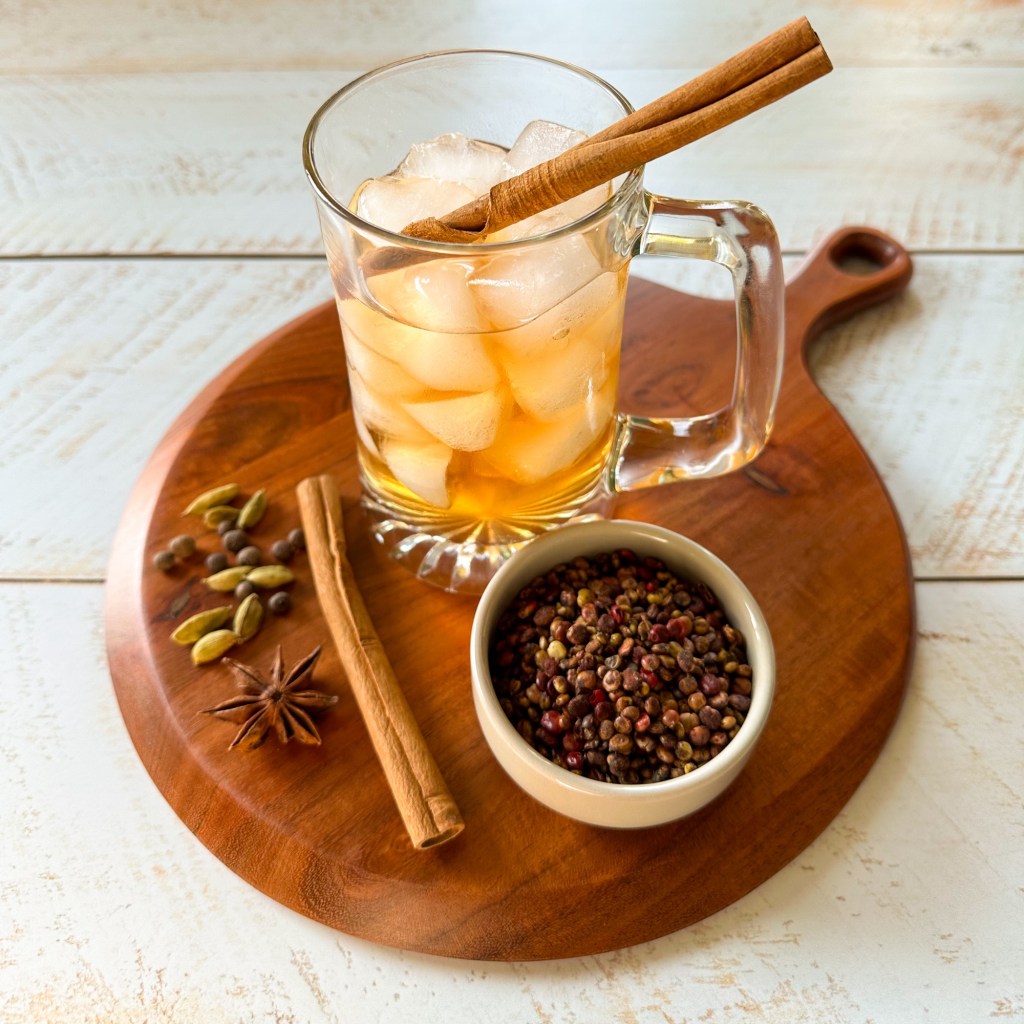 Combine all ingredients in a pitcher; you might decide to use a large tea strainer or large eco-friendly paper tea bag to hold the mulling spices for ease of removal. Allow to cold brew either at room temperature or in the refrigerator for 4 hours to overnight.