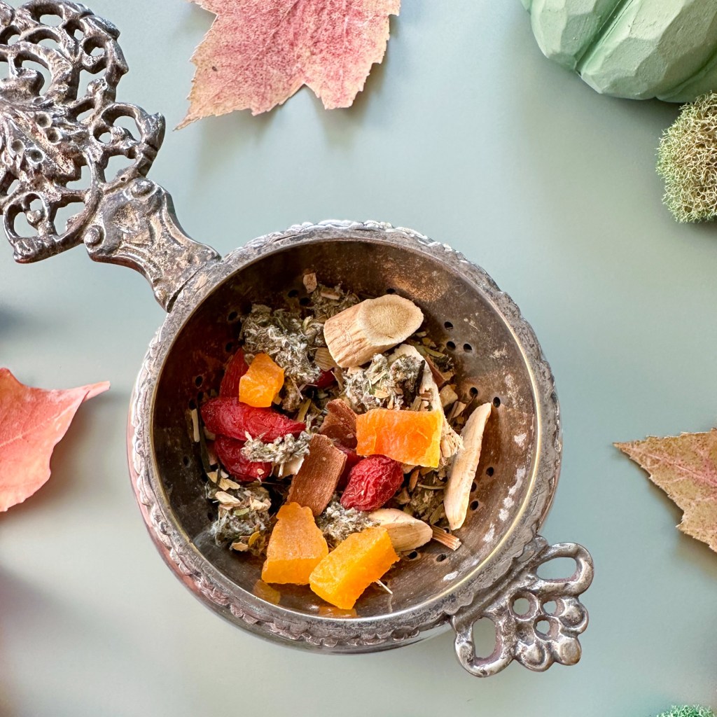 Garnish with cinnamon sticks and dried apricots if you like! Sip this tea before a lantern-lit autumn hike under the moonlight!